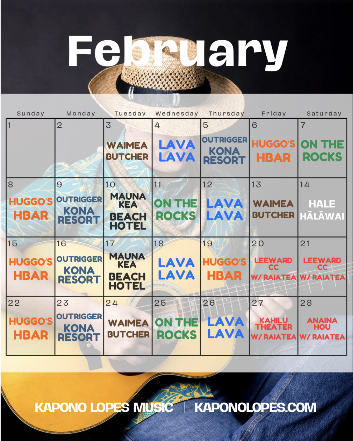 Kapono Lopes is a featured musician in the house band at Waikoloa Music and Cultural festival, where he accompanies a diverse lineup of artists throughout the event. This celebration of Hawaiian music, hula, and culture brings together performers from across the islands in a showcase featuring Hawaiʻi’s top talents.